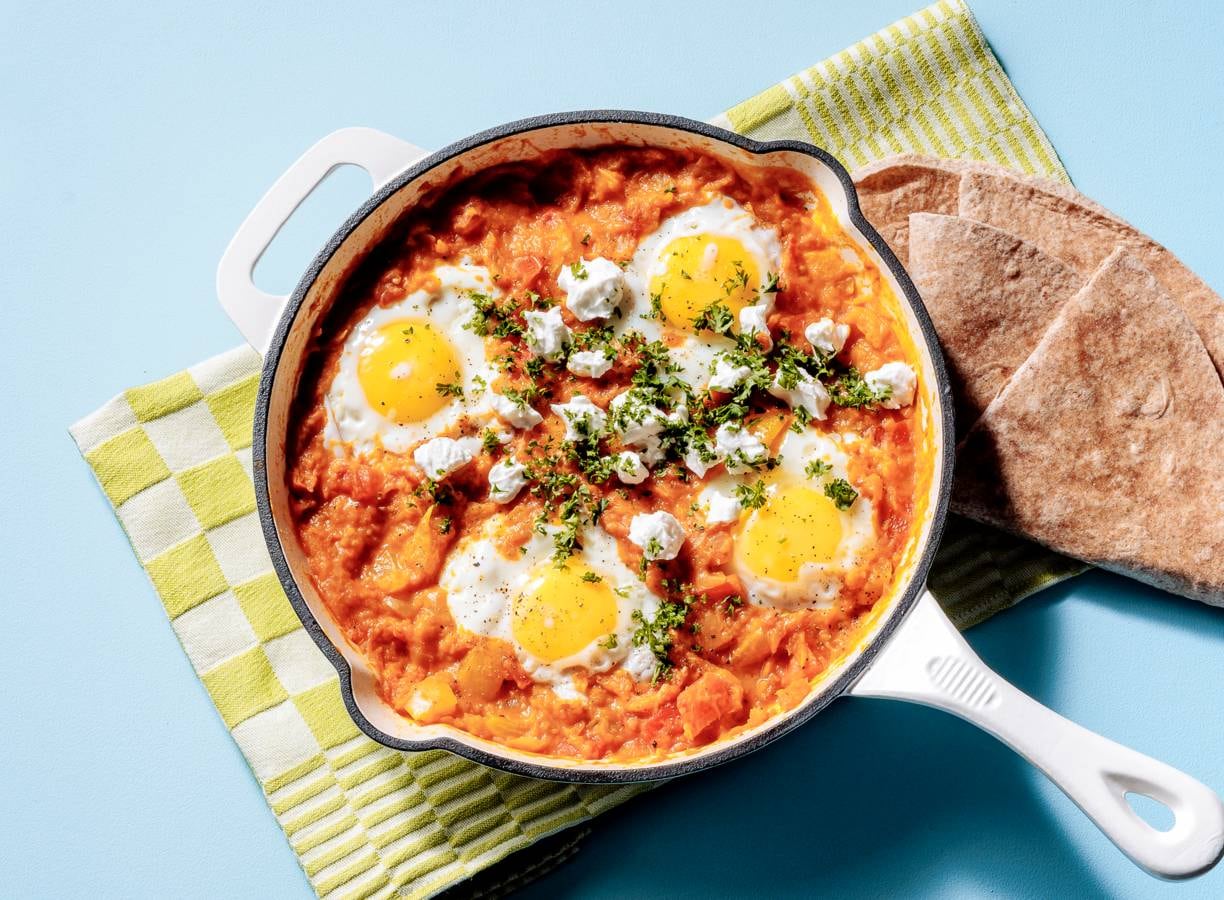 Dol op shakshuka? Wandel dit weekend dan even binnen bij Albert Heijn XL Den Haag en kom shakshuka met pompoen en geitenkaas proeven!