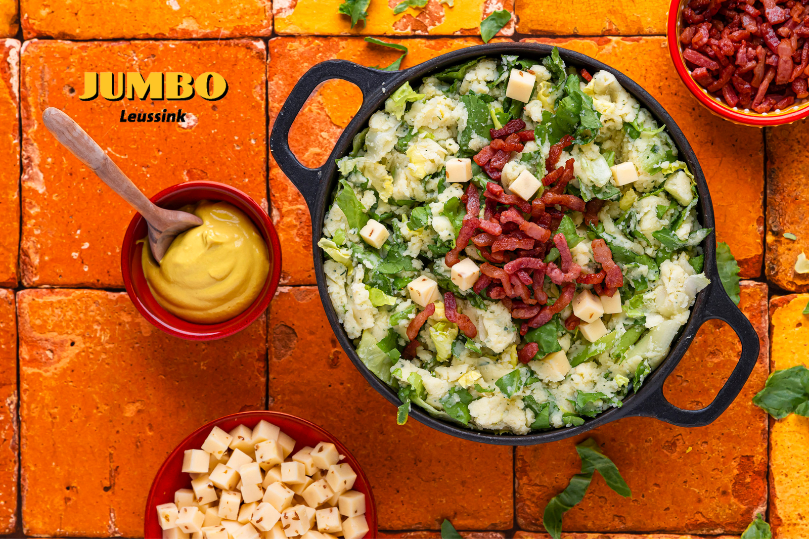 Geniet deze week van een heerlijk verse andijviestamppot, afgetopt met spekjes en komijnekaas. Kom langs bij Jumbo Leussink in Goor om te proeven! Onze chefs laten je zien hoe je dit gerecht met de verse Aviko Mashed Potato in een handomdraai op tafel zet.