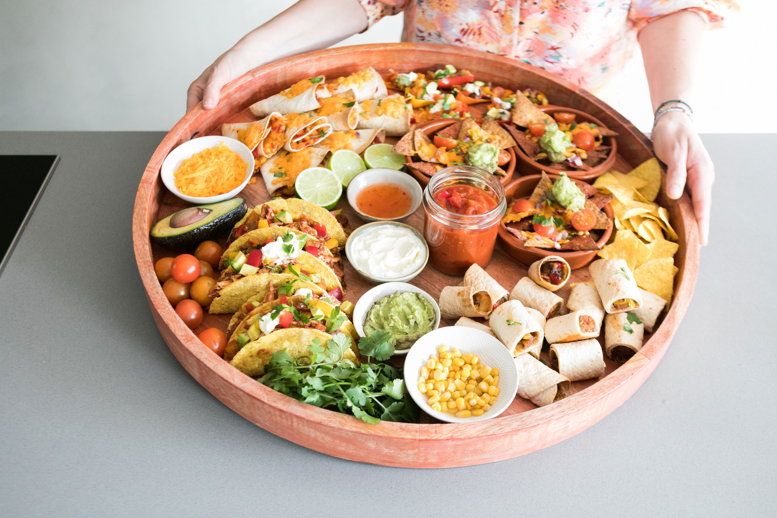 De Tex-Mex keuken leent zich uitstekend voor een gezellige avond. Ruil je standaard taco-avond eens in voor deze goedgevulde ‘sharing’ plank. Vul de plank met lekkere hapjes zoals taco’s, tomatensalsa en taquitorolletjes. Voor ieder wat wils! Brenda van Brenda Kookt heeft de plank met zorg gevuld.