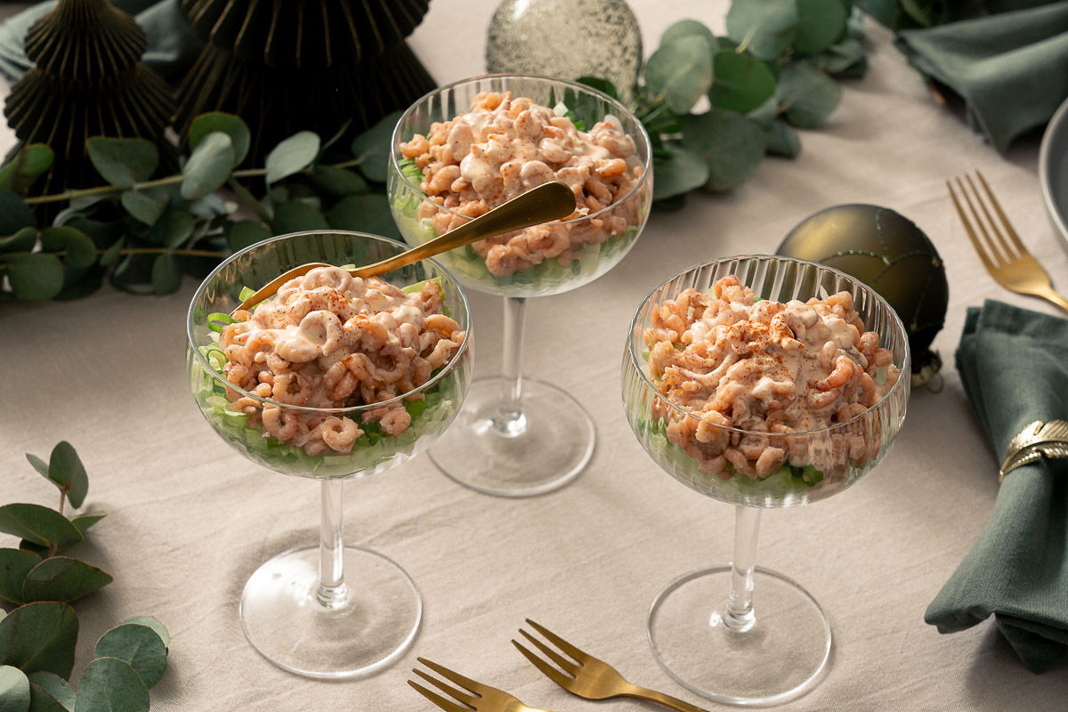 Klassieke voorgerechten blijven tijdens de feestdagen favoriet, omdat ze precies de juiste balans geven tussen oud en vertrouwd, én feestelijk. Of je nu kiest voor eenvoudige Kerst voorgerechten die weinig tijd kosten, of juist gaat voor luxe Kerst voorgerechten waarmee je nét wat extra indruk maakt. We hebben een hoop simpele kerstvoorgerechten voor je klaar staan, zoals deze klassieke garnalencocktail die altijd in de smaak valt!