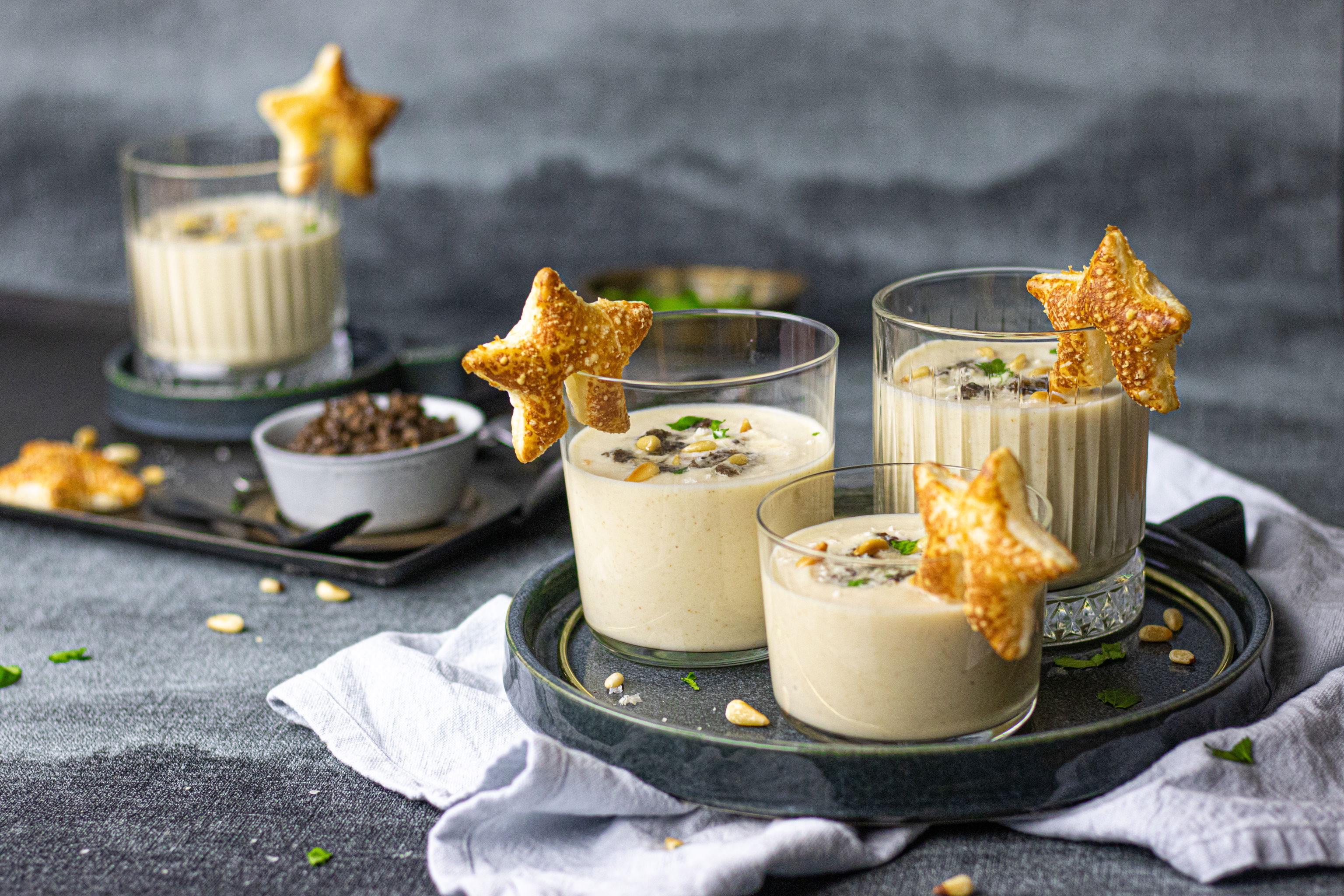 Een warme soep voor Kerst is altijd een goed idee. Deze romige Kerst soep van geroosterde knolselderij met truffeltapenade is vol van smaak en ziet er prachtig uit. Serveer het in een glas en werk af met een Parmezaanse kaaskrokantje op de rand, zo wordt dit Kerst voorgerecht meteen een feestelijke binnenkomer die je gasten niet snel vergeten!