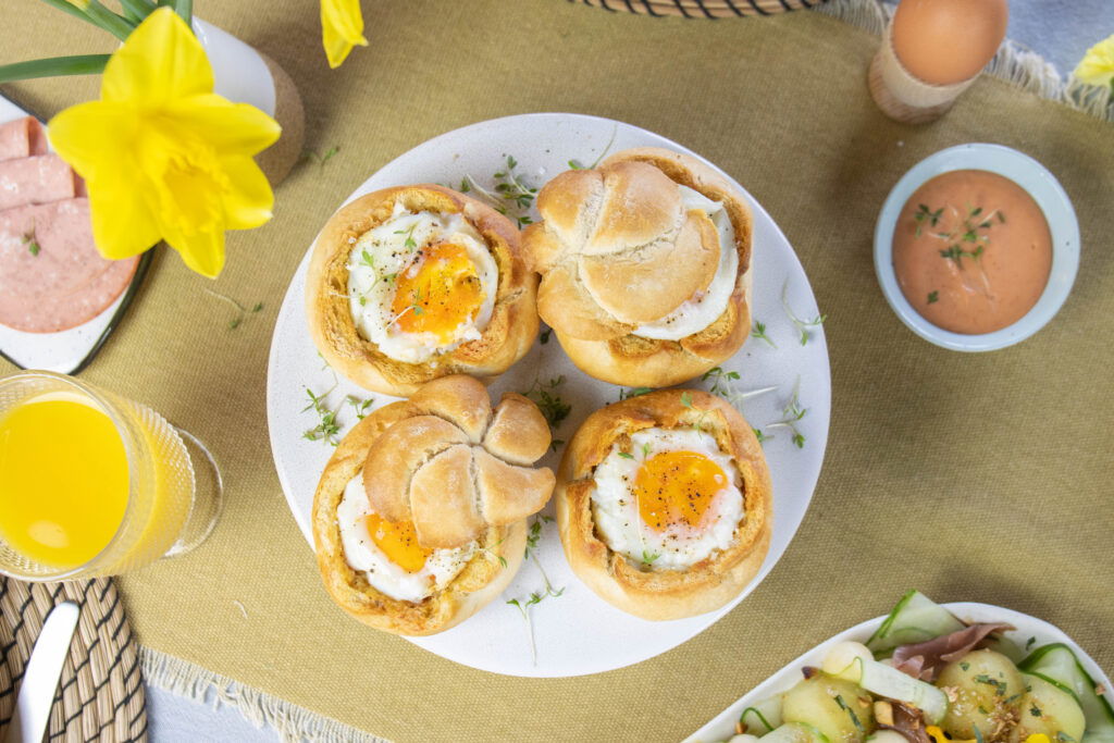 Maar wat zet je dan eigenlijk op die tafel? Met onze paas recepten heb je genoeg keuze om te zorgen voor een gevarieerd en luxe ontbijt. Bij het paasontbijt mogen allereerst de gekookte en beschilderde eieren natuurlijk niet ontbreken. Zeker als je kinderen of kleinkinderen hebt, is het gezellig om de eieren samen te schilderen. Naast het standaard gekookte ei kun je ook creatieve gerechten met eieren bij het paasontbijt serveren. Er zijn genoeg paasrecepten, die jou helpen van een simpel eitje iets verrassends te maken. Daarnaast horen verse broodjes bij het ontbijt. Deze kun je zelf maken, eventueel met hulp van je (klein)kinderen, of zelf afbakken. Serveer de broodjes met luxe vleeswaren en kaas. Of combineer broodjes met ei als een gevulde broodje. Zoetigheid doet het ook altijd goed. Uiteraard kun je gaan voor een lekkere paasstol maar wat dacht je van een zoet warm ontbijtje als broodpuddinkjes?