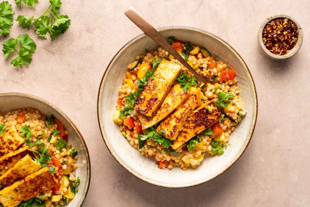 Dinsdag – Harissa parelcouscous met halloumi