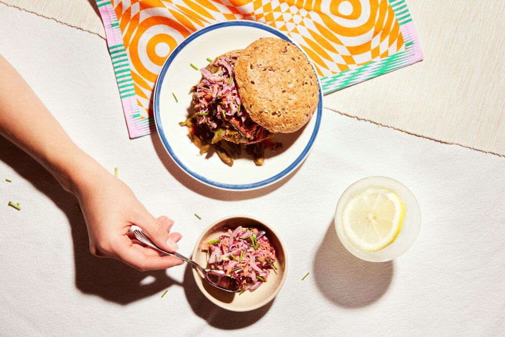 Een heerlijk broodje shoarma? Maak deze plantaardige variant met Lekker Fred’s Pulled Paddo’s Shoarma en Viekan mayo! De koolsla maak je zelf van rode kool, winterpeen, rode ui en een heerlijke dressing. Dit is zo’n gerecht waarvan je achteraf zegt: “Zit hier geen vlees in? Niets van gemerkt!”. De Pulled Paddo’s hebben namelijk een vlezige structuur die haast niet van echt vlees te onderscheiden is. Dit wil je proberen!