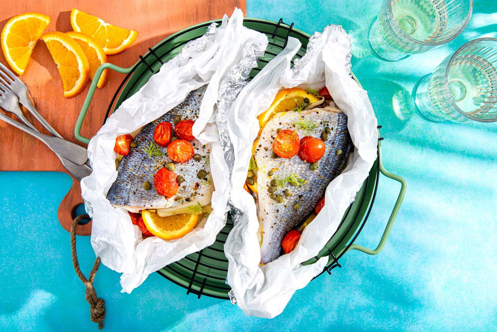 Het is eindelijk weer tijd om te barbecueën! Ga naast de klassieke vleesgerechten als spareribs en kipsaté ook eens voor een visje van de barbecue. In dit recept van DekaMarkt kiezen we voor een dorade, die wordt gevuld met sinaasappel, venkel en cherrytomaten. Maak af met wat witte wijn en kappertjes, gril op de barbecue en het resultaat is een goddelijk stukje vis.