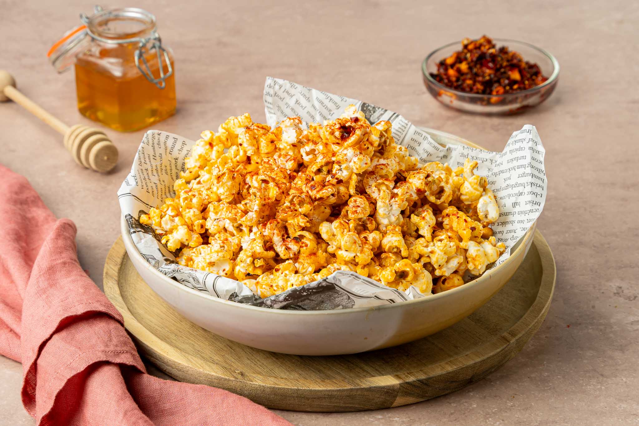 Hot honey popcorn laat zien dat met een paar ingrediënten een uitgesproken snack kan worden gemaakt. Een eenvoudige bereiding met een duidelijke smaakrichting.