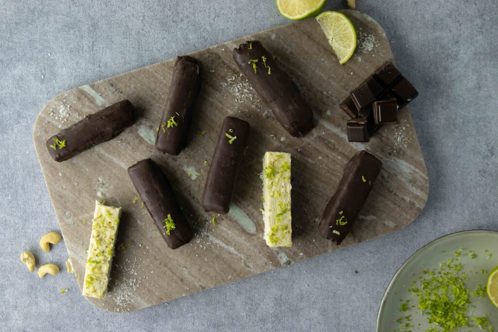 Deze repen zien er heerlijk uit en zijn makkelijk zelf te maken! Je moet wel even geduld hebben, want tussendoor moet de vulling 40 minuten in de vriezer, maar in die tijd kun je genoeg andere dingen doen, zoals de heerlijke hibiscus-chai thee zetten. Een mooie bijkomstigheid van deze repen; ze bevatten geen geraffineerde suikers.