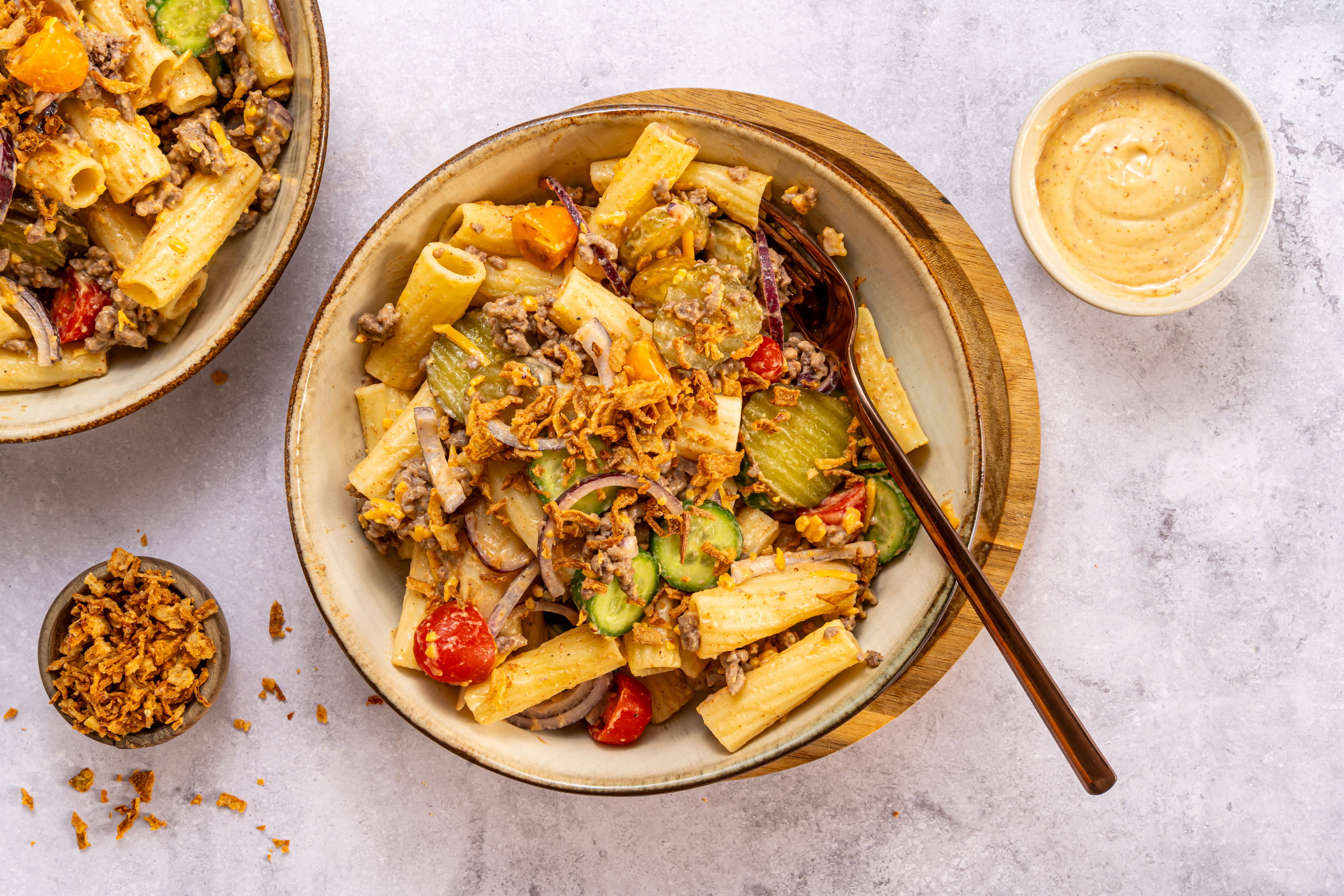 Het bereiden van dit gerecht begint met het maken van een frisse koolsla, wat een knapperige en romige textuur toevoegt als gerecht naast de burgers. De zoete aardappelfrietjes worden eenvoudig gebakken in de oven met een beetje olie en kruiden, wat zorgt voor een gezondere variant van de klassieke frietjes. De pulled BBQ wordt verwarmd en gemengd met gekarameliseerde uien voor extra smaak. De broodjes worden opgebouwd met een rijke saus en de gegrilde pulled BBQ, en geserveerd met de zelfgemaakte frietjes en koolsla.