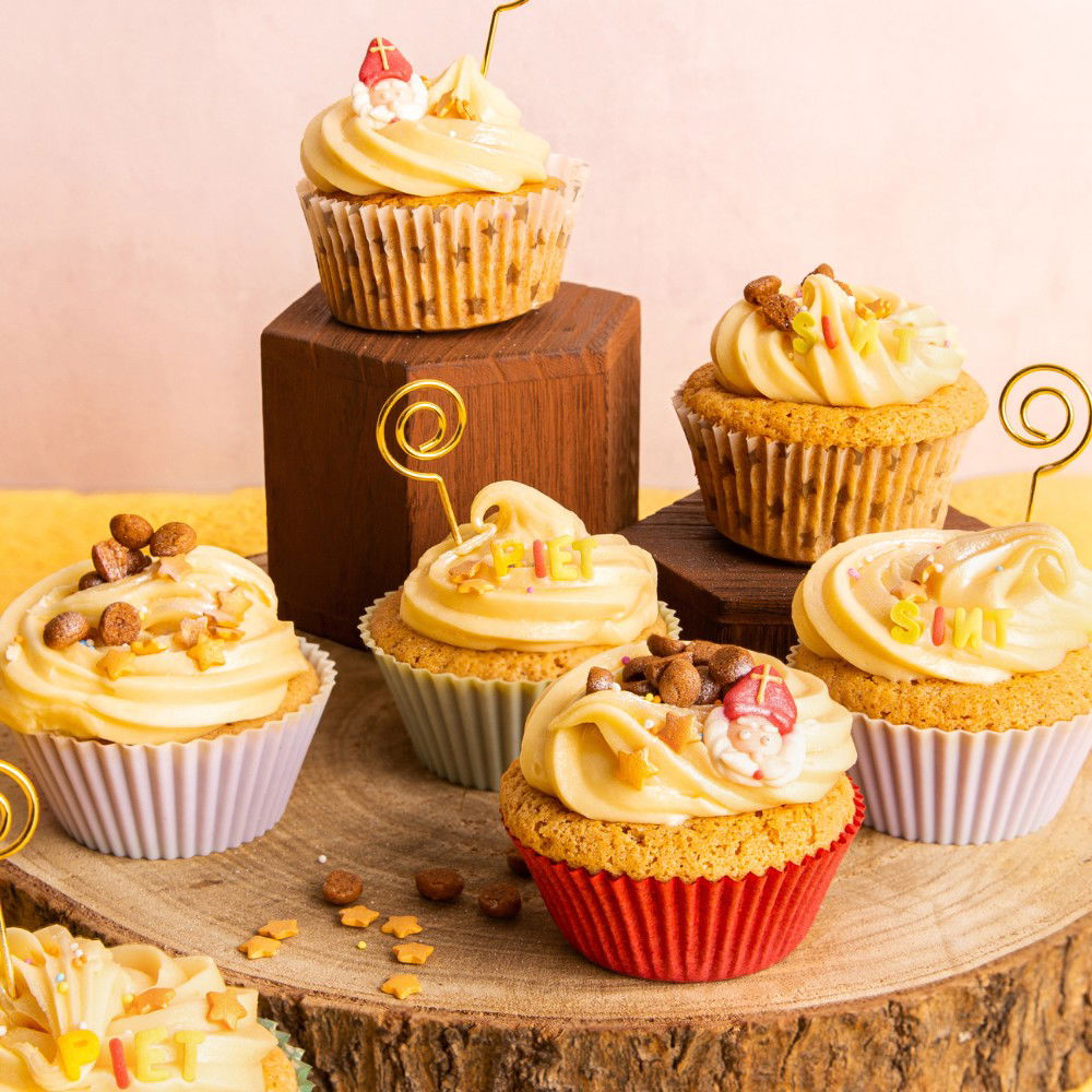 Deze Sinterklaas cupcakes zijn leuk om samen te versieren met kinderen. Dankzij de kruidenmix voor koek en speculaas smaken de cupcakes overheerlijk. Met de toppings kan eindeloos gevarieerd worden, laat de creativiteit erop los en versier de cupcakes met alles wat je lekker vindt.