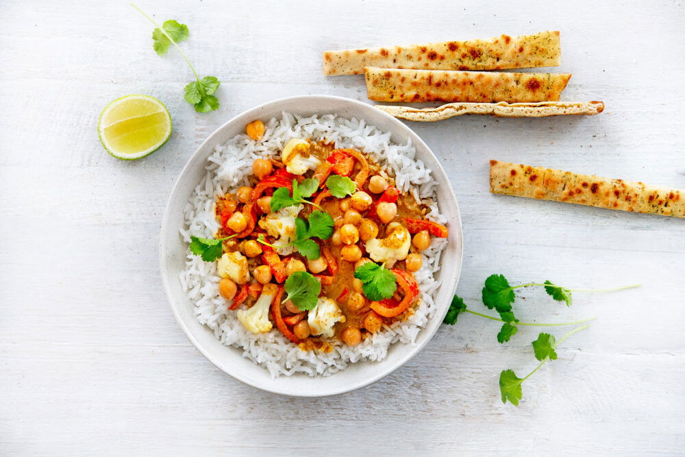 Tip: serveer er wat naanbrood bij om lekker mee in de curry te dippen.