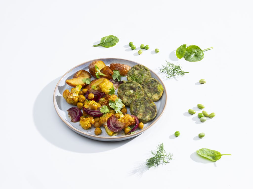 Traybake met green protein bites