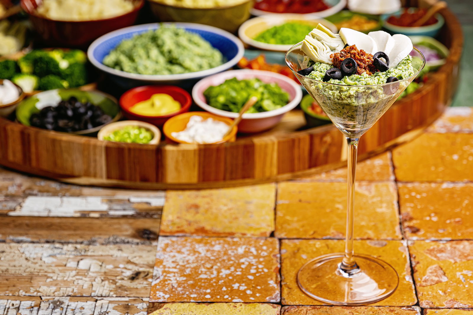Tiffin: pasta gegrilde groente, salade caprese en focaccia