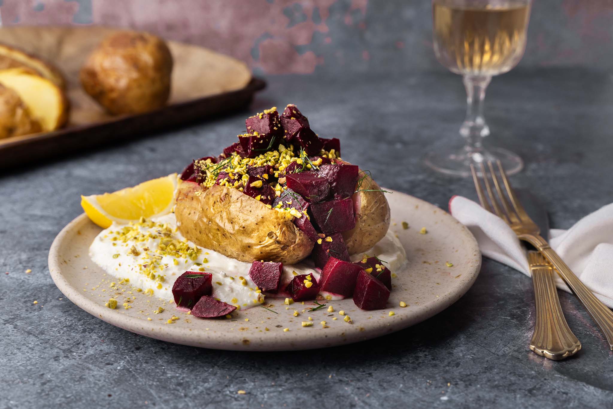 Gepofte aardappel met whipped feta