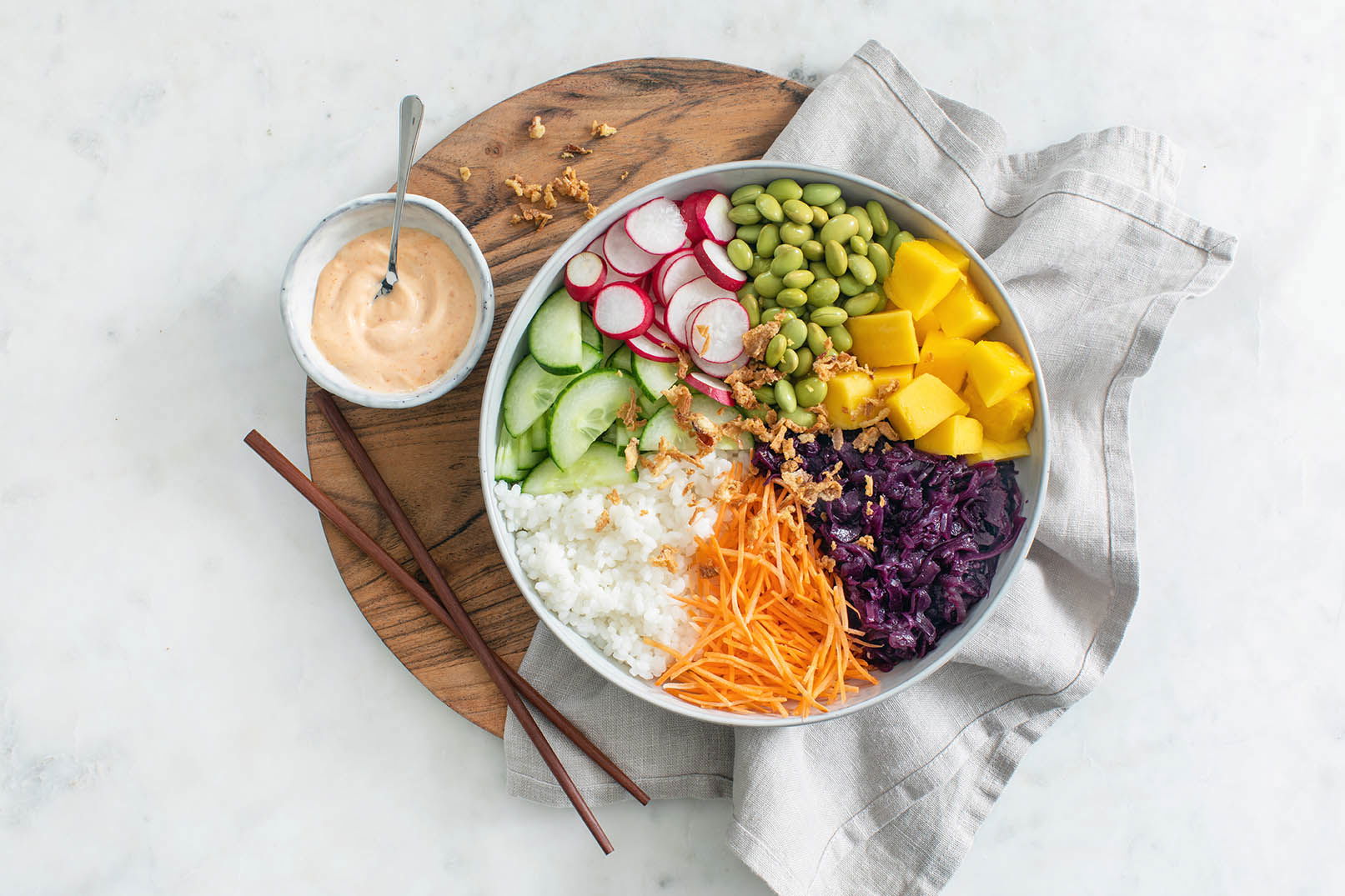 Een sushi bowl, ook wel bekend als een poké bowl, is een heerlijke manier om van de sushi ingrediënten te genieten. Denk aan sushirijst, verse vis en knapperige groenten. Wat dacht je van de vegetarische sushi bowl met knapperige avocado? Een echte aanrader zodra je een sushi rol lastig te maken vindt, deze bowl serveer je namelijk in 25 minuten al op tafel! Een sushi bowl (of poké bowl) is een populaire keuze voor de liefhebbers van de Japanse keuken en gezonde maaltijden.